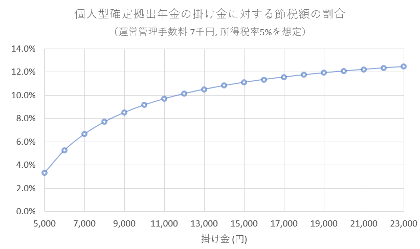 たとえば所得税率が 5% の人が毎月 1 万円を掛けたと仮定すると、節税額は
