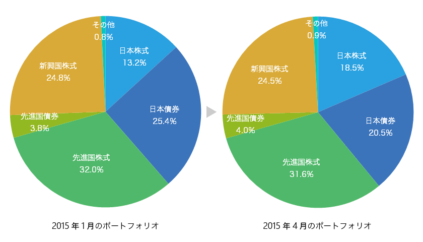 日本株が急騰して、バランスがかなり変わってきていると思われたので、2015年3月31日時点でのポートフォリオ(現在の資産内訳)をまとめてみます。ちなみに前回(2015年1月)のポートフォリオについてはこちら。